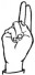 На ћирилици написано БЛАЖА СТОЈАНОВИЋ састоји се из 15 слова [?]. Исписано ћириличном једноручном азбуком за глувонеме: